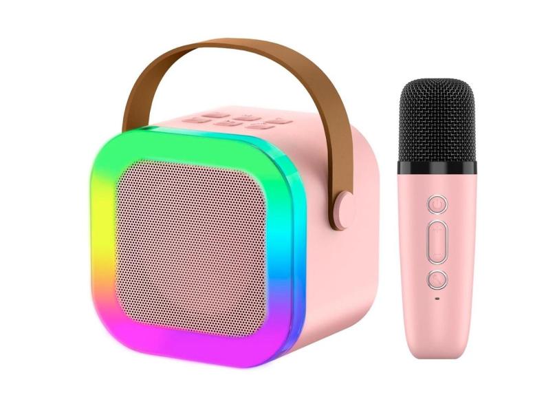Caixa de Som Karaokê Infantil Bluetooth Microfone Sem Fio LED rgb Portátil
