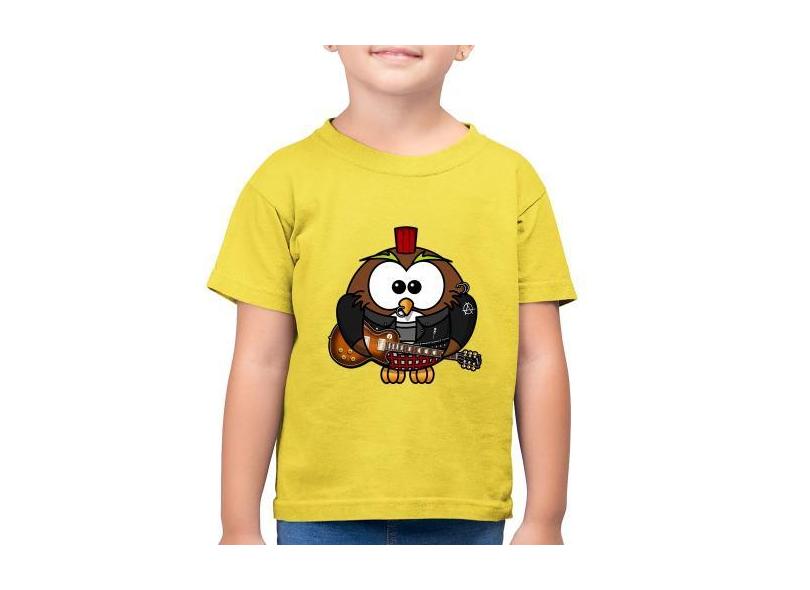 Camiseta Algodão Infantil Coruja Rock Guitarra - Foca na Moda, Amarelo