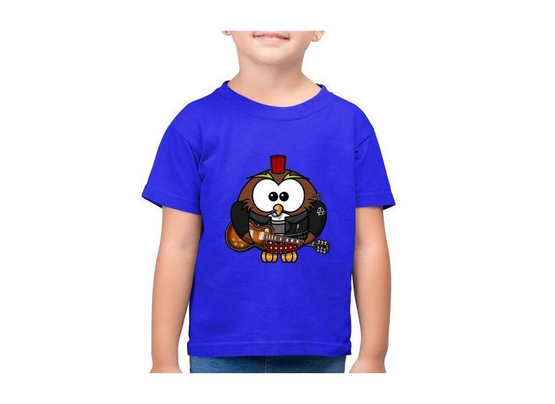 Camiseta Algodão Infantil Coruja Rock Guitarra - Foca na Moda, Azul ro