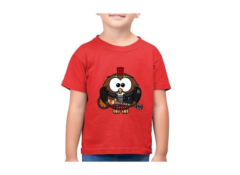 Camiseta Algodão Infantil Coruja Rock Guitarra - Foca na Moda, Vermelh