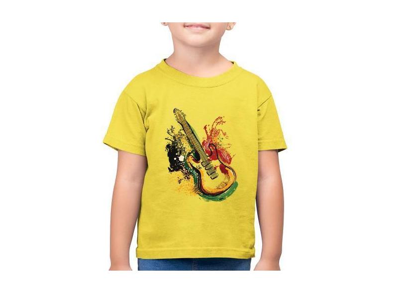 Camiseta Algodão Infantil Guitarra Reggae - Foca na Moda, Amarelo caná