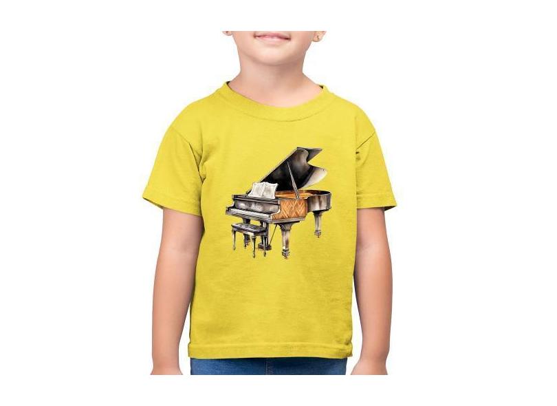 Camiseta Algodão Infantil Piano Arte - Foca na Moda, Amarelo canário,