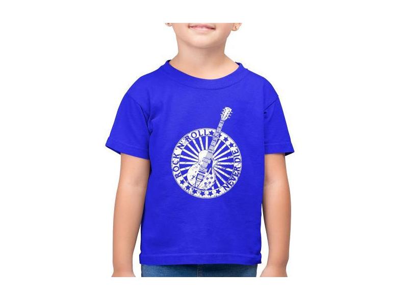 Camiseta Algodão Infantil Rock n Roll Never Die Guitarra - Foca na Mod