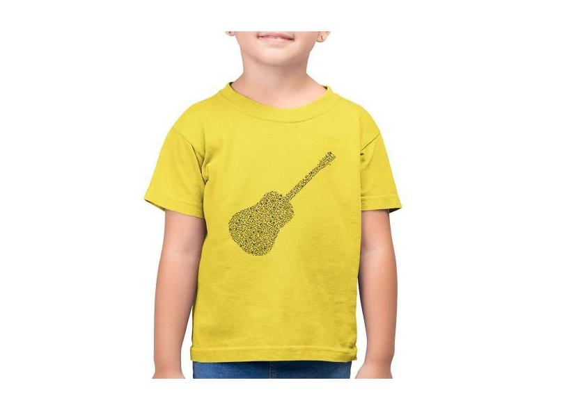 Camiseta Algodão Infantil Violão Notas Musicais - Foca na Moda, Amarel