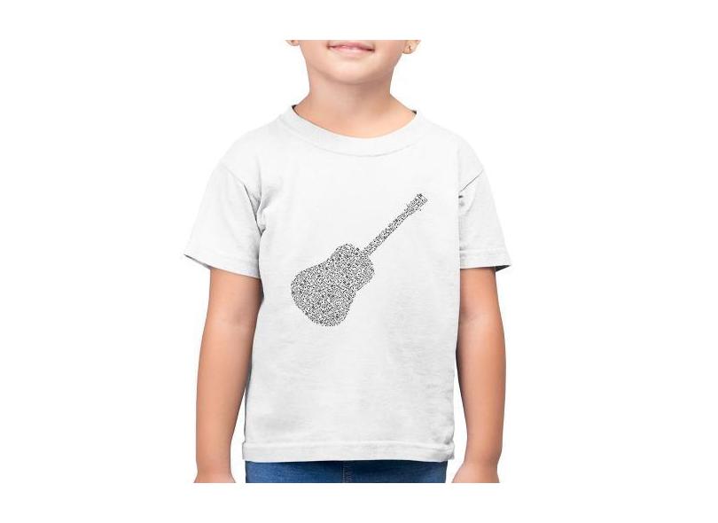 Camiseta Algodão Infantil Violão Notas Musicais - Foca na Moda, Branco