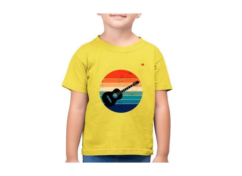 Camiseta Algodão Infantil Violão Vintage Sunset - Foca na Moda, Amarel