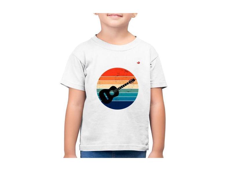 Camiseta Algodão Infantil Violão Vintage Sunset - Foca na Moda, Branco