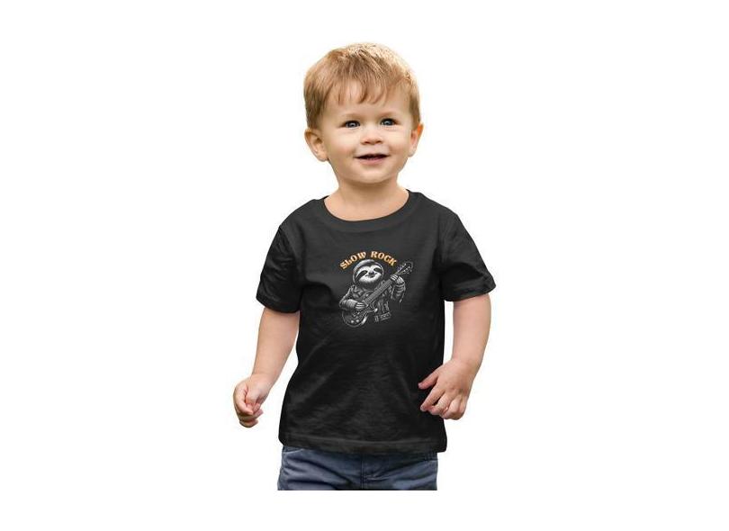 Camiseta Infantil Menino Menina Slow Rock Preguiça Guitarra - Hipsters