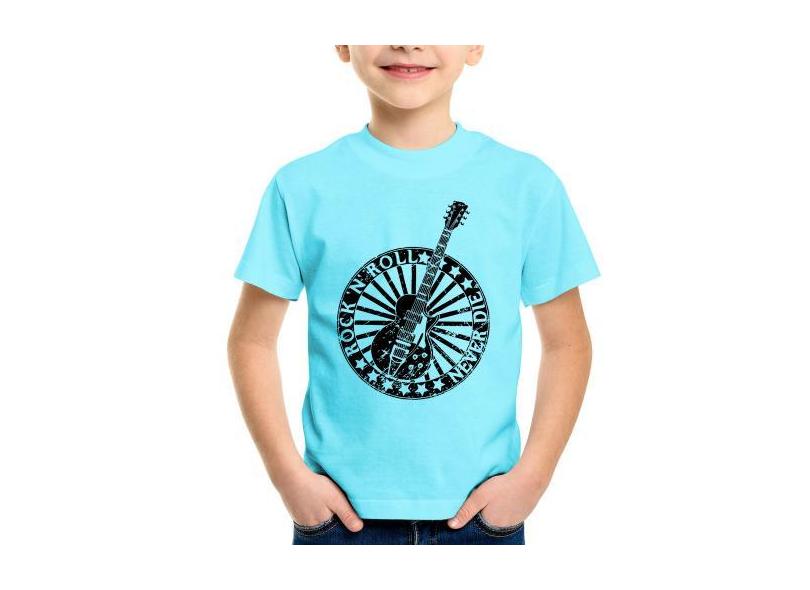 Camiseta Infantil Rock n Roll Never Die Guitarra - Foca na Moda, Azul