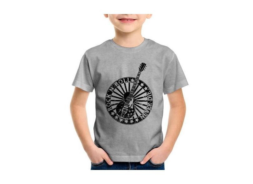 Camiseta Infantil Rock n Roll Never Die Guitarra - Foca na Moda, Cinza