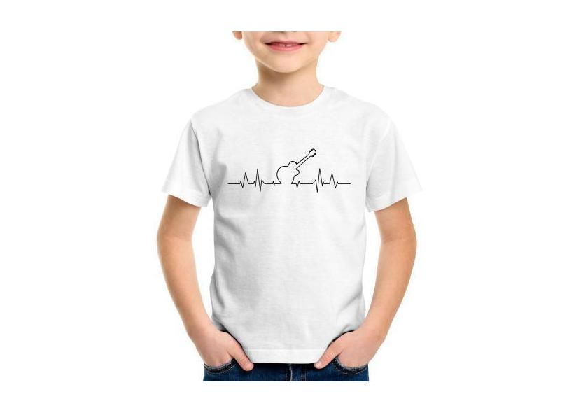 Camiseta Infantil Violão Batimentos Cardíacos - Foca na Moda, Branco,