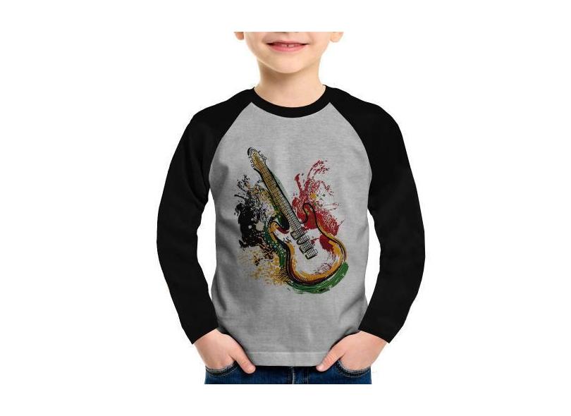 Camiseta Raglan Infantil Guitarra Reggae Manga Longa - Foca na Moda, C
