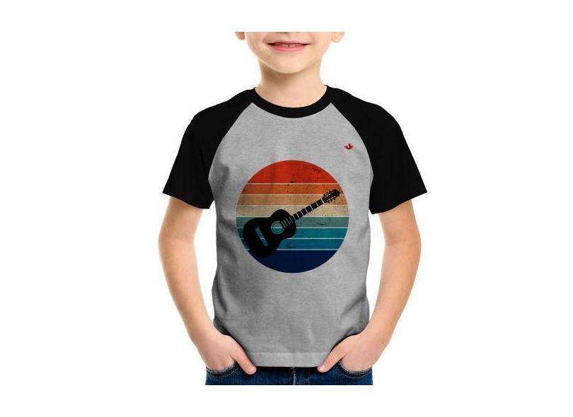 Camiseta Raglan Infantil Violão Vintage Sunset - Foca na Moda, Cinza,