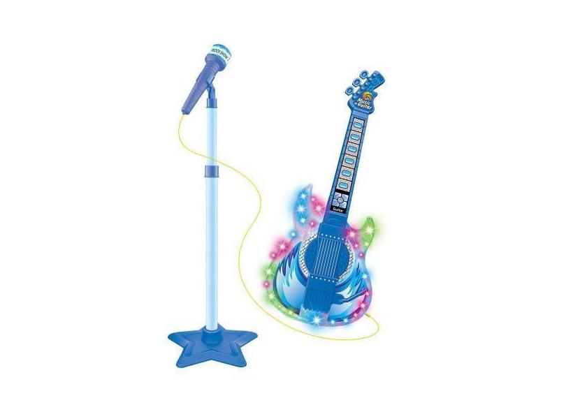 Guitarra Infantil C Microfone Pedestal Toca Mp3 Luz Som Azul - Dm Bras