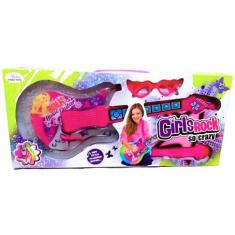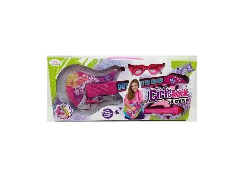 Guitarra Rosa Musical Infantil Girls Rock Com Som E Luz + Óculos E Mic