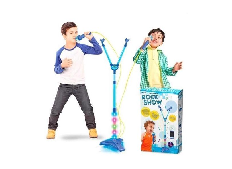 Karaoke infantil amplificador musical microfone duplo pedestal rock st
