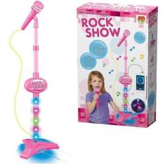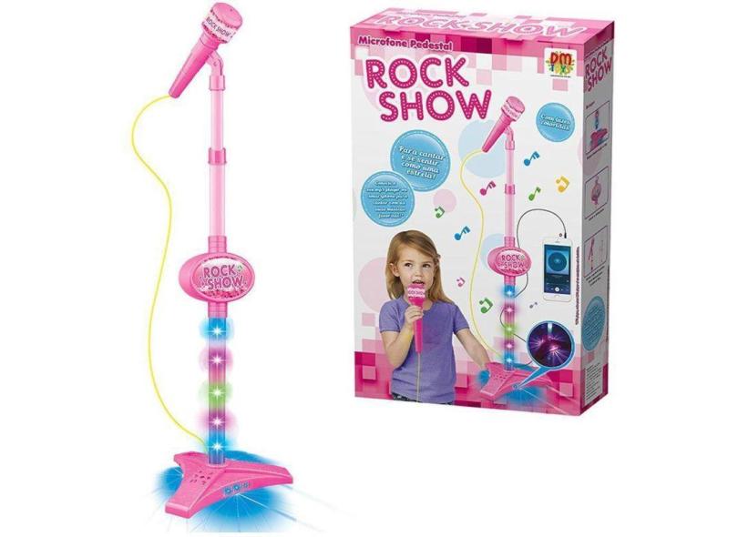 Microfone Pedestal Infantil Rock Show Luz e Som Rosa dm Toys