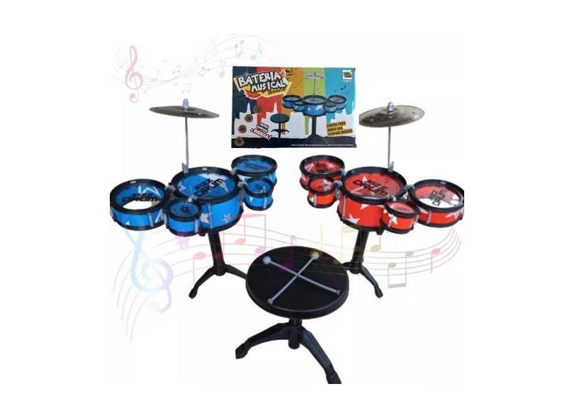 Mini Bateria Infantil 5 Tambores C/Baquetas E Banquinho - Toy King