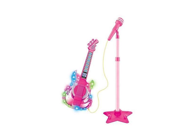 Novo Microfone Com Pedestal E Guitarra Infantil Rock Show - Dmtoys