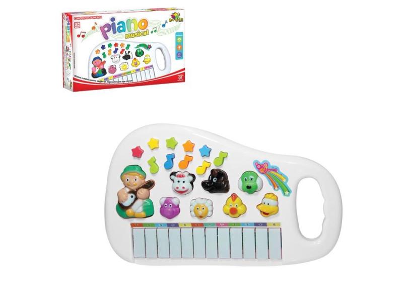 Piano Teclado Infantil Musical Bichos Fazendinha Branco Art Brink