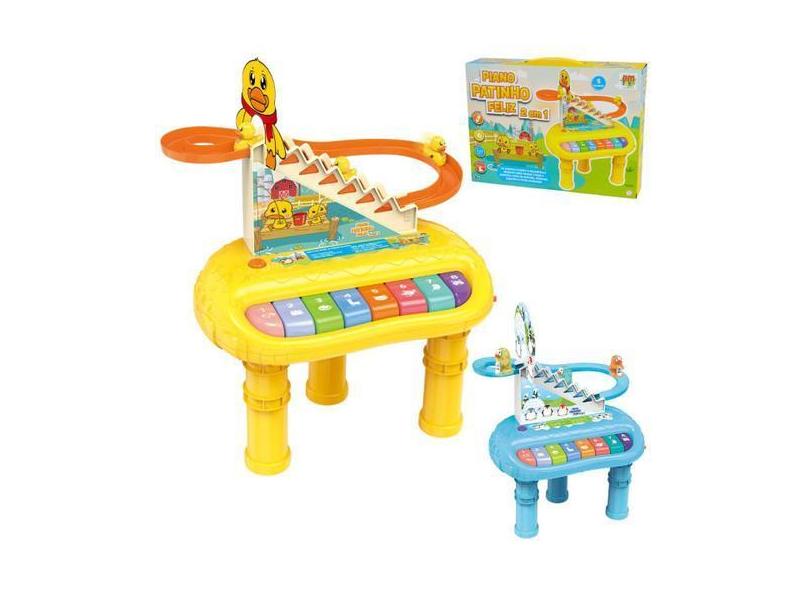 Piano Teclado Musical Infantil Pinguim Feliz 2 Em 1 Luz Som - Dm Toys