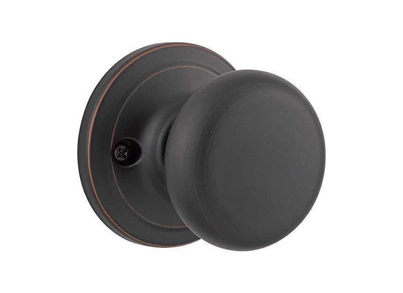 Kwikset Maçaneta falsa Juno, maçaneta de um lado para armários, portas duplas francesas e despensa, puxador interno de bronze veneziano, sem virar, com proteção Microban