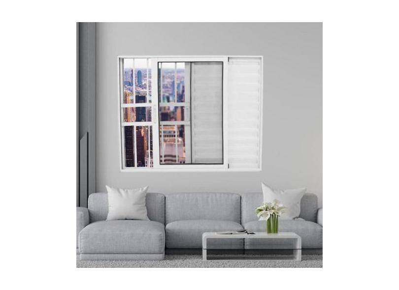 Janela Veneziana de Alumínio 3 Folhas 100 x 150cm com Grade Linha 25 E