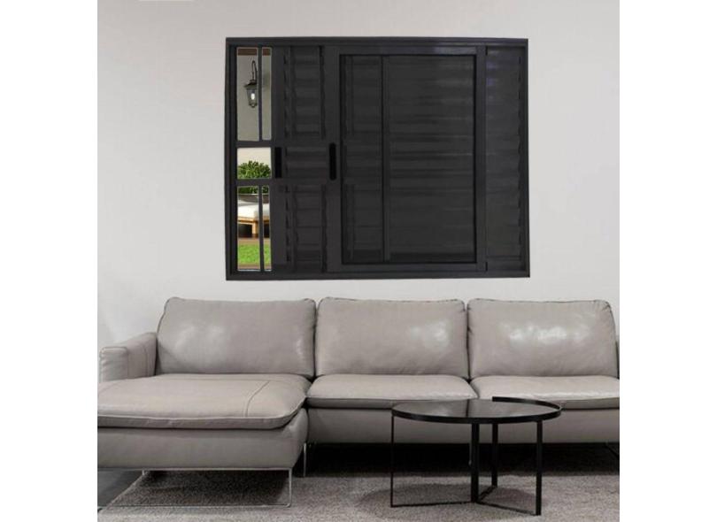 Janela Veneziana de Alumínio 3 Folhas 100 x 150cm Linha 25 com Grade Esquadrias Bergame Preto