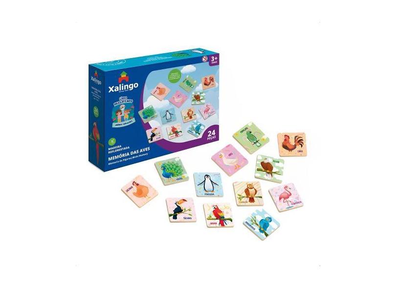 Jogo Da Memória Infantil +3 Anos 24 Peças Aves Passatempo Em Madeira R