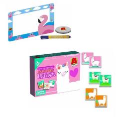 Risque Rabisque Flamingo + Jogo Da Mémoria Lhama Em Madeira - Algazarr