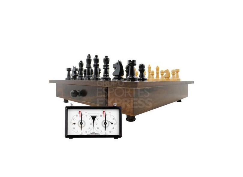Jogo De Xadrez Oficial Em Madeira Nobre Com Tabuleiro, Peças E Relógio