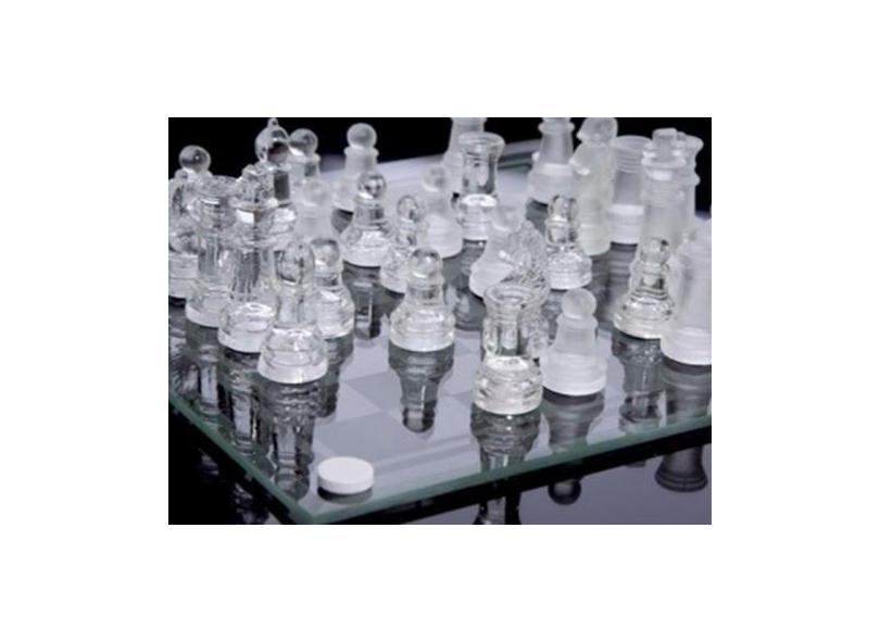Jogo de Xadrez Tabuleiro Vidro Transparente 25x25 cm - Imporiente
