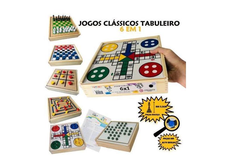 Jogos De Tabuleiro 6X1 Xadrez Damas Ludo Trilha Velha Resta1 - Futura