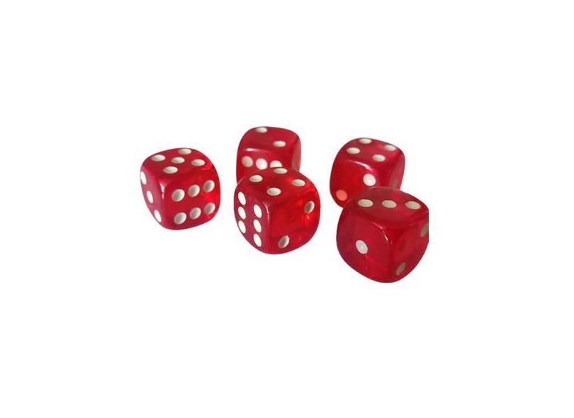 Kit 5 Dados 16 Mm Vermelho Transparente Para Jogos De Tabuleiro Salão