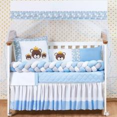 Kit Berço Urso Trança Modelo Americano Menino 12 Peças Com Saia Box