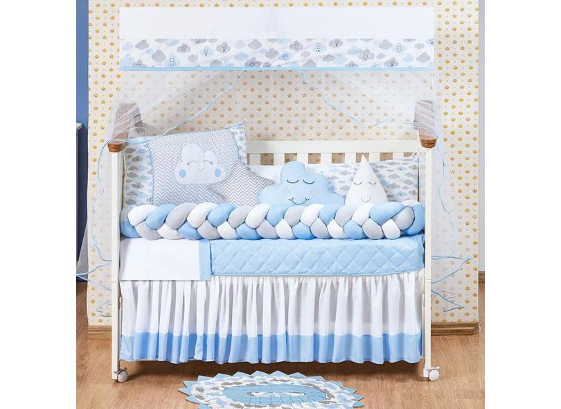 Kit Jogo De Berço Nuvem Menino 13 Peças Tapete E Saia