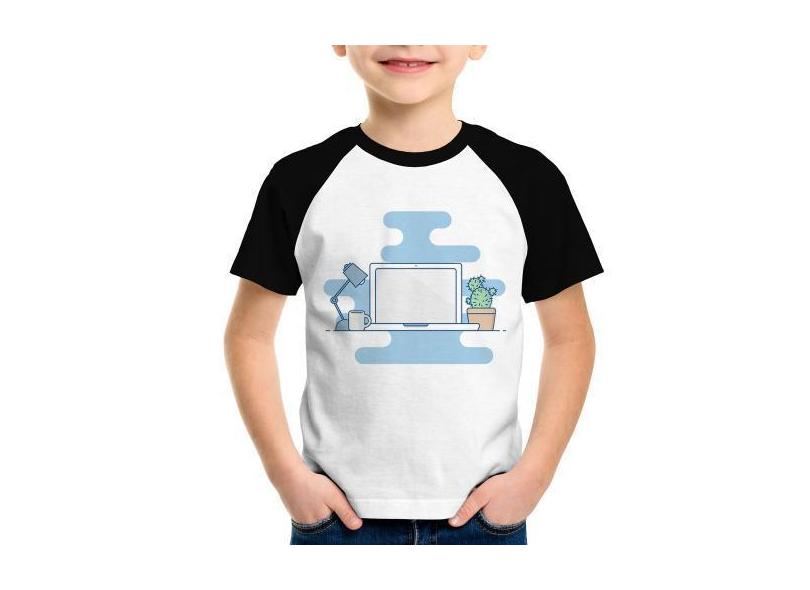 Camiseta Raglan Infantil Laptop - Foca Na Moda