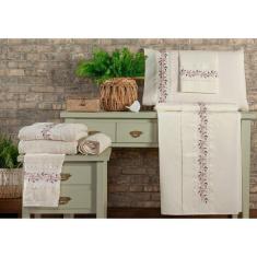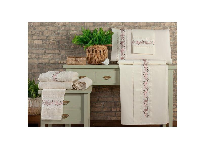 Jogo De Cama 4 Peças Leaves Casal + Jogo De Banho Leaves 4 Peças - Mercado Bordado - Palha/rosê