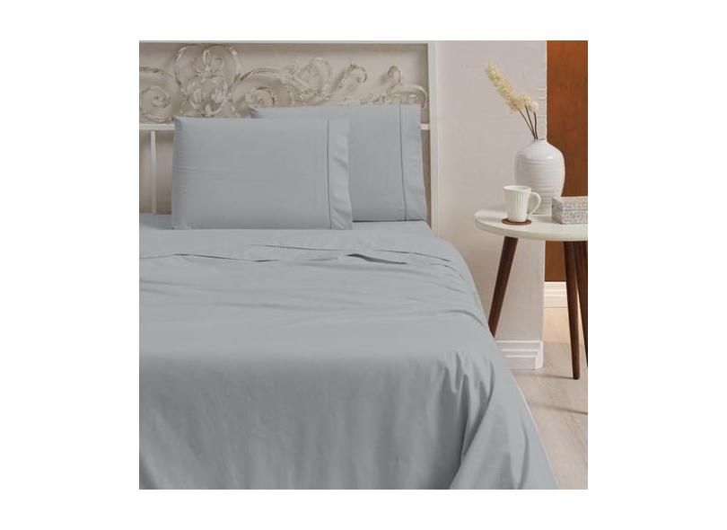 Jogo De Cama Queen 4 Peças 100% Algodão 400 Fios Cinza - Paulo Cesar