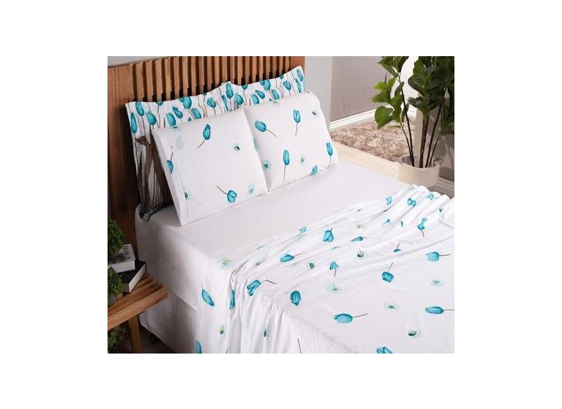 Jogo De Lençol Tulipa Casal Queen Algodão Branco - Am Bordados