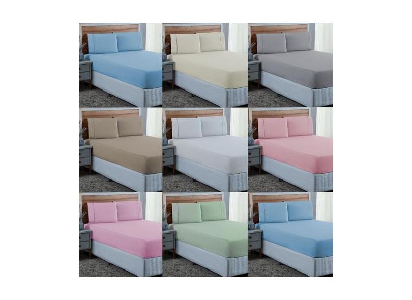 Roupa De Cama Queen Com Elástico Fronha Ponto Palito 3 Peças 300 Fios