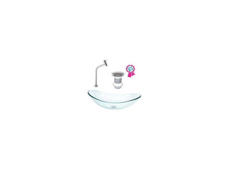 Cuba De Vidro Oval 47Cm Jateada + Válvula Click + Torneira De Metal