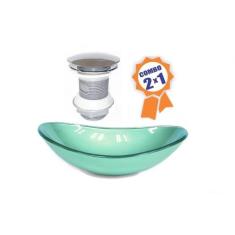 Cuba De Vidro Oval 47Cm Verde + Válvula Click