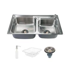 Cuba Para Cozinha Pia Dupla Aço Inox Gourmet Potiguara Com Acessorios Pingoo.Casa