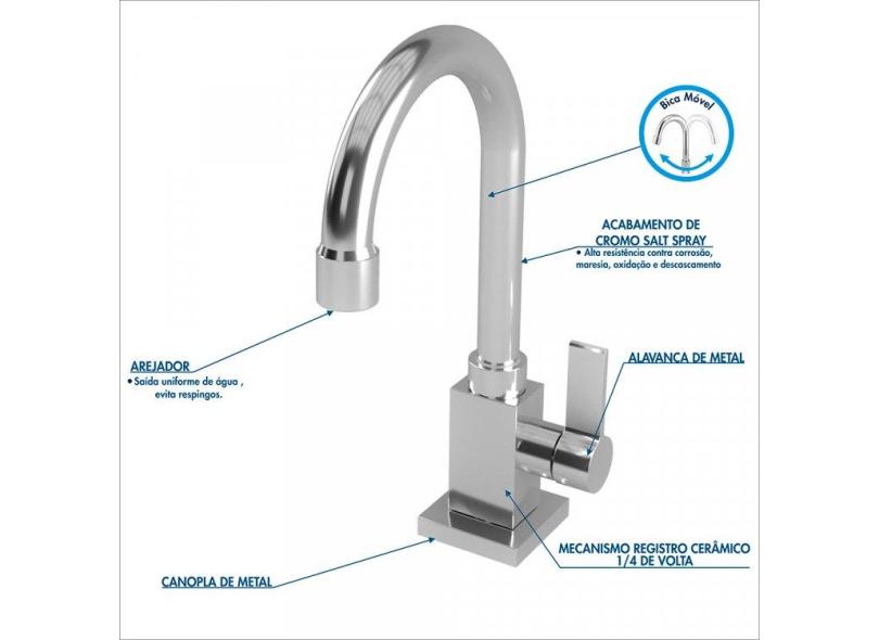 Kit Cuba Q45 Com Torneira Luxo 1195 Metal E Válvula Click 1 Pol. 1/2 Sifão Pvc E Flexível Compace