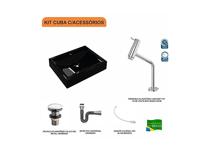 Kit Cuba RT49 com Torneira Pratika 1060 Metal e Válvula Click 1 Polegada G e Sifão Cromado e Flexível Compace