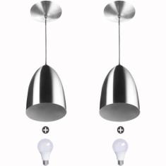 Kit 2 Lustre Pendente Cone De Alumínio 20x14cm Escovado + Lampada