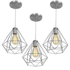 Kit 3 Pendentes Diamante Aramado Grande Cromado