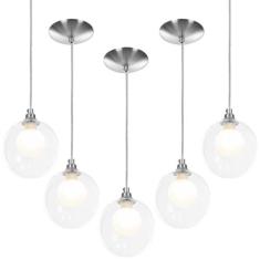 kit 5 Lustres Pendentes Harmony Bolinha Escovado