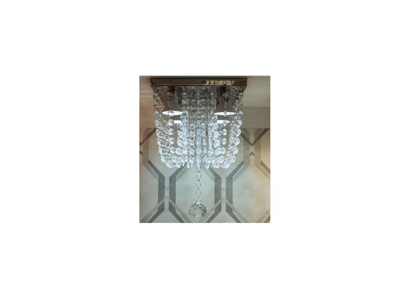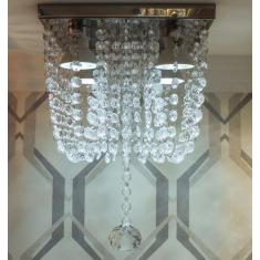 Lustre em Cristal e Acrílico Para Sala ou Quarto c/ 25cm De Altura Na Base De Inox Espelhado 20X20cm